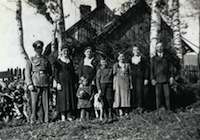 | Fürstenwalde 097 - Familie Chudaska, 1943. Zum letztem mal zu Hause als Fronturlauber in Zivilbekleidung Junior Karl Chudaska mit Schwester Emmy. Hintere Reihe von links: Wilma Kilimann aus Rehbruch, Emmy und Erna Zysk aus Klein - Lindenort und Ida Zelustek. |