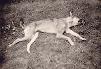 Grammen 016 - Erlegter Wolf, 06. August 1935. Im Großen Schobensee vom Fischer Branitzki und Sohn vom Boot aus erschlagener Wolf.
