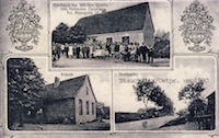 Stauchwitz 002 - Gasthaus zur frischen Quelle, Hermann Opialla, Tel. Mensguth 24, Schule und Dorfpartie, um 1930.