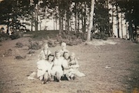 | Wappendorf 048 - Vor dem Kieferberg bei Gottlieb Baschek – Abbau, August 1942. Ruth Gorray, Oskar Kendziorra, Cousine von ( aus Berlin ) von Emmy Juse, Emmy Juse, Anni Gollan geb. Grzywatz und Lenchen Gorray. |