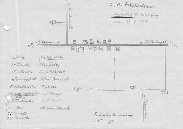 Die Ortspläne wurden von ehemaligen Bewohnern aus dem Gedächtnis erstellt. Diese sind nicht Maßstabsgetreu und können unvollständig sowie fehlerhaft sein. Die Originale befinden sich in der Heimatstube in Herne und können dort eingesehen und als Kopie erworben werden. Bei Fragen hierzu wenden Sie sich bitte an den/die Archivverwalter/in der Kreisgemeinschaft Ortelsburg.